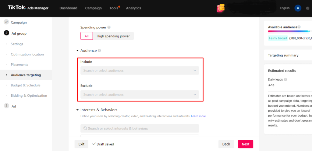 ثانياً: إعلانات تيك توك الملعب الجديد للكبار